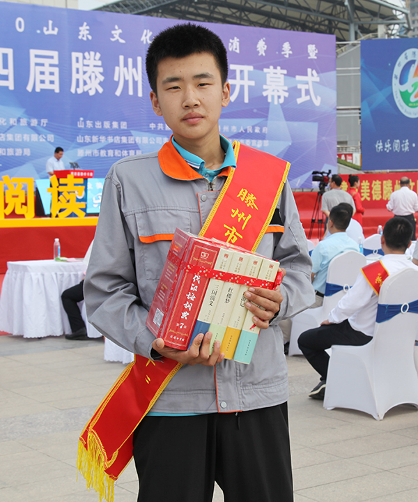 開幕式上,對棗莊市“見義勇為先進(jìn)集體”、滕州市“學(xué)雷鋒好少年”的先進(jìn)事跡進(jìn)行了宣講并贈送圖書,我院學(xué)生唐巖上臺接受了贈書。