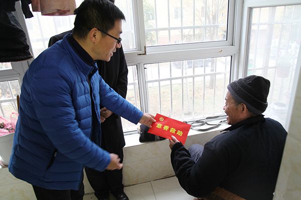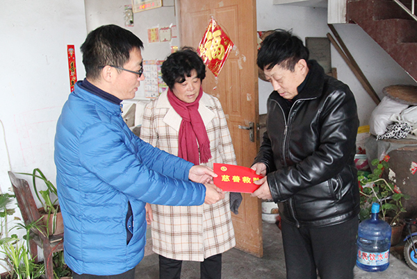 李懷亮一行代表學院給貧困家庭送上慰問金,并鼓勵他們積極樂觀地面對生活,勉勵他們家正在讀書的孩子努力學習知識和技能,增強脫貧信心。
