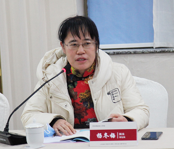 會(huì)上,濟(jì)南市技師學(xué)院學(xué)工處處長(zhǎng)李秀玲、聊城技師學(xué)院學(xué)工處處長(zhǎng)王玉梅、山東交通技師學(xué)院學(xué)工處處長(zhǎng)朱洪濤、德州市技師學(xué)院學(xué)工處處長(zhǎng)劉宏杰、山東省教科院評(píng)估所王迎新分別從班主任工作室建設(shè)、班主任青藍(lán)工程建設(shè)、學(xué)生管理工作、學(xué)生管理專業(yè)理論水平提升等方面進(jìn)行了經(jīng)驗(yàn)分享。