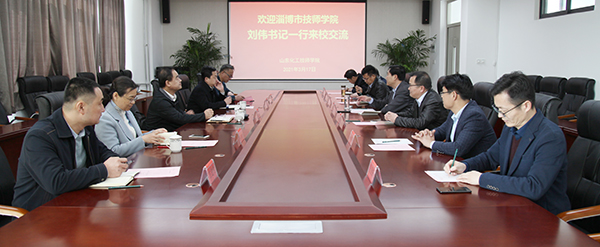 3月17日,淄博市技師學(xué)院黨委書記劉偉一行六人來我院參觀交流。學(xué)院黨委副書記、院長王慶杰,副院長張繼宏、崔世玉在高鐵新區(qū)校區(qū)會議室接待了到訪客人并座談。