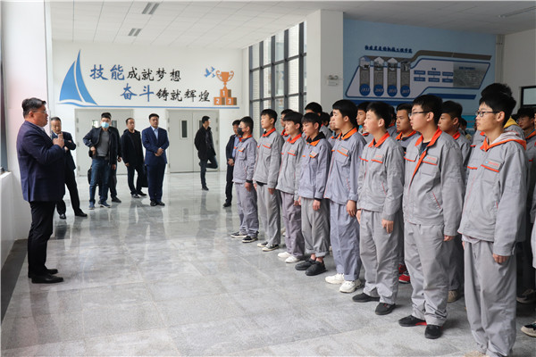 肖振一行參觀了化工生產(chǎn)實(shí)訓(xùn)中心、機(jī)械工程實(shí)訓(xùn)中心、世界技能大賽中國(guó)集訓(xùn)基地;就縣經(jīng)濟(jì)發(fā)展、引才政策、園區(qū)就業(yè)收入水平、個(gè)人發(fā)展前景等問(wèn)題向?qū)W生進(jìn)行詳細(xì)介紹。