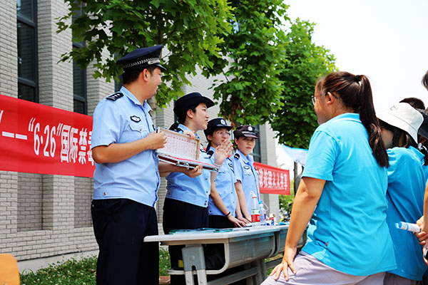 活動(dòng)現(xiàn)場(chǎng)通過宣傳橫幅、毒品仿真樣品展示、擺放禁毒知識(shí)展板,禁毒知識(shí)宣講、發(fā)放各種禁毒戒毒資料等形式,讓廣大師生對(duì)禁毒形勢(shì)和我國(guó)的禁毒戒毒工作有了更加深入的了解。活動(dòng)中,各位警官分別從不同角度對(duì)宣傳活動(dòng)的意義、目的和內(nèi)容進(jìn)行講解,指出當(dāng)前我國(guó)吸毒呈現(xiàn)低齡化特點(diǎn),積極開展禁毒戒毒宣傳活動(dòng),努力提高廣大師生識(shí)毒、防毒、拒毒意識(shí),在思想和行動(dòng)上自覺抵制毒品,遠(yuǎn)離毒品。