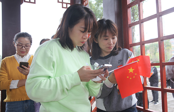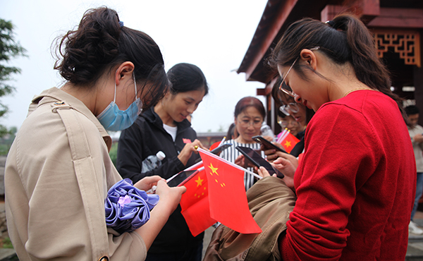 伴隨激昂的音樂,大家手舞國旗,精神抖擻,步履矯健,昂揚向上的隊伍形成了一道亮麗風景線。沿途風景優(yōu)美,大家在若水河畔長廊處進行黨史知識掃碼答題,在和諧輕松的氛圍里溫故黨史。