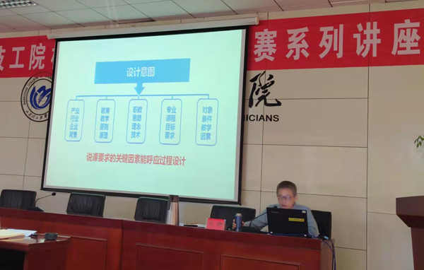 講座中,吳教授針對學(xué)院參賽教師提供作品中存在的問題逐一點評,并和青年教師進(jìn)行熱情互動,現(xiàn)場解答老師們課程設(shè)計中遇到的疑問和難題;并對教師職業(yè)能力大賽中的現(xiàn)場沉著應(yīng)答環(huán)節(jié)進(jìn)行培訓(xùn),從說課準(zhǔn)備、撰寫高質(zhì)量說課稿、課件制作、精彩演說及準(zhǔn)備答辯進(jìn)行了詳細(xì)講解。
