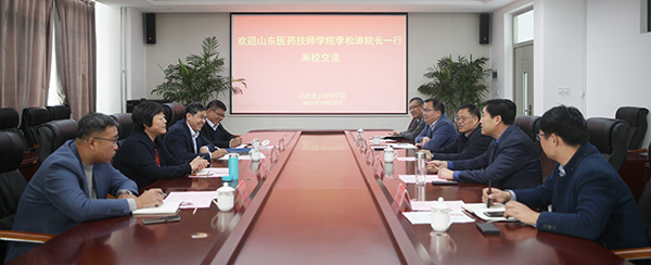 10月25日,山東醫(yī)藥技師學(xué)院院長李松濤一行來我院參觀交流,學(xué)院黨委書記孫晉東,院長王慶杰,副院長張繼宏在高鐵新區(qū)校區(qū)會議室接待到訪客人并座談。