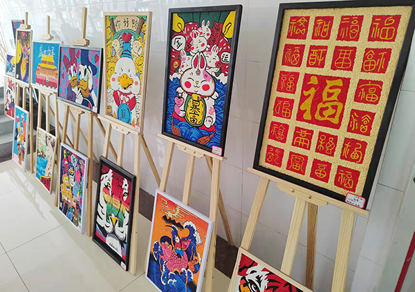 一件件精美的畫展作品令參觀領(lǐng)導(dǎo)稱贊有加,這些參展作品是教育與公共服務(wù)系學(xué)生新學(xué)期開學(xué)以來的學(xué)習(xí)成果,由丙烯畫、工筆花鳥畫、素描、簡筆畫、繪本、紙漿畫、衍紙作品、毛線畫、三角插、麻繩作品、剪紙、筷子作品、紙版畫、超輕粘土、面具等諸多門類組成,作品中有俏皮的動物、精致的人物畫像、構(gòu)思豐富的故事繪本、美好的新年祝福......展現(xiàn)了學(xué)生豐富的想象力,扎實的基礎(chǔ)功底,昂揚向上的青春風采和精神面貌。