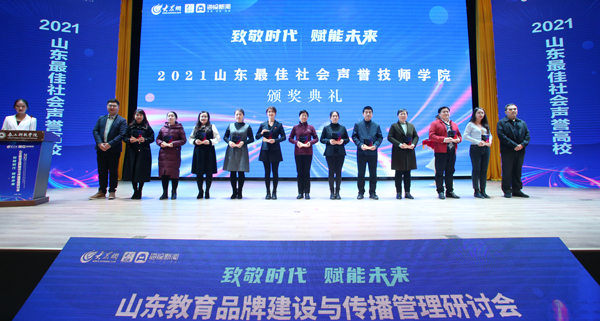 12月24日,2021山東教育品牌建設(shè)與傳播管理研討會(huì)在泰安舉行,我院獲評(píng)“2021年度山東最佳社會(huì)聲譽(yù)技師學(xué)院”。